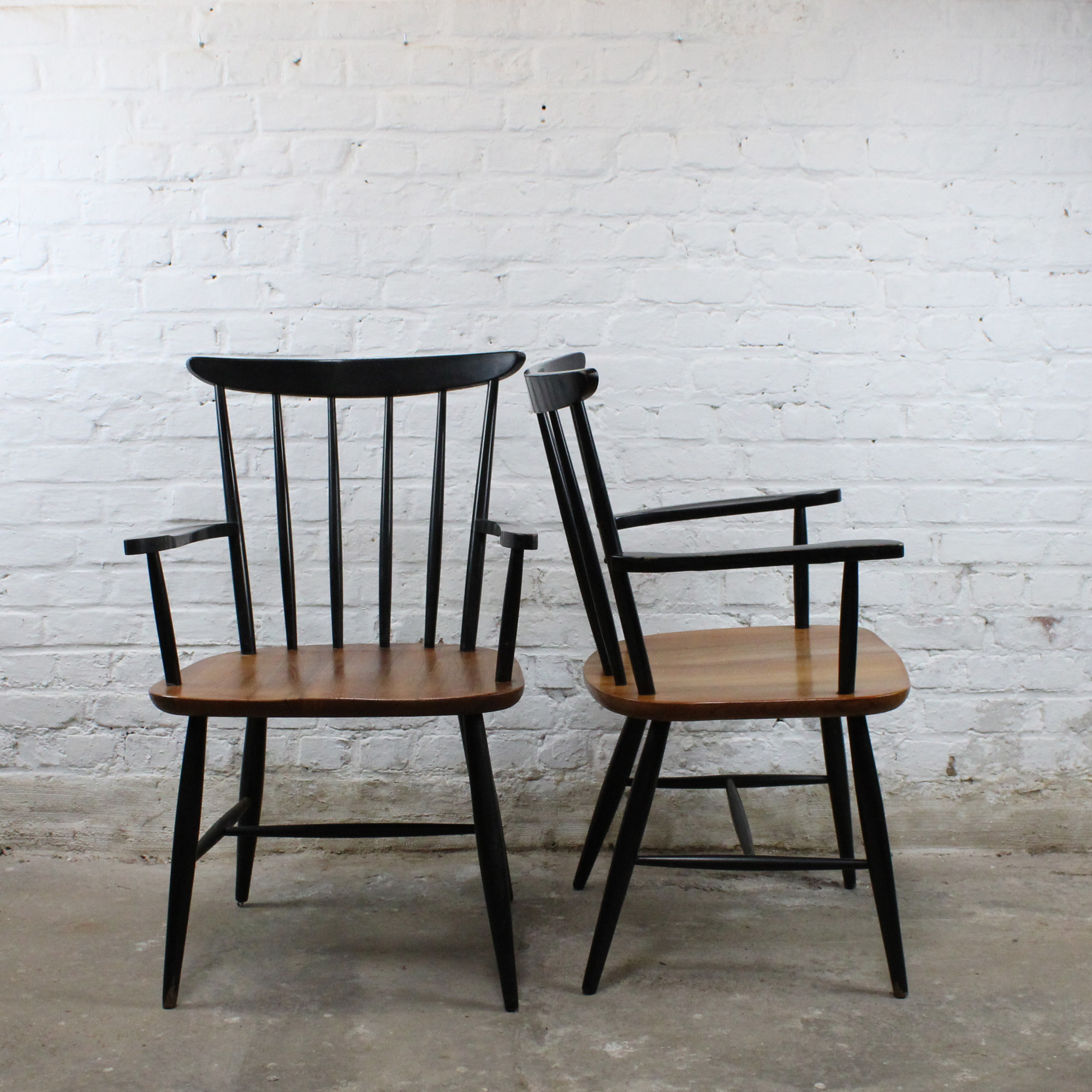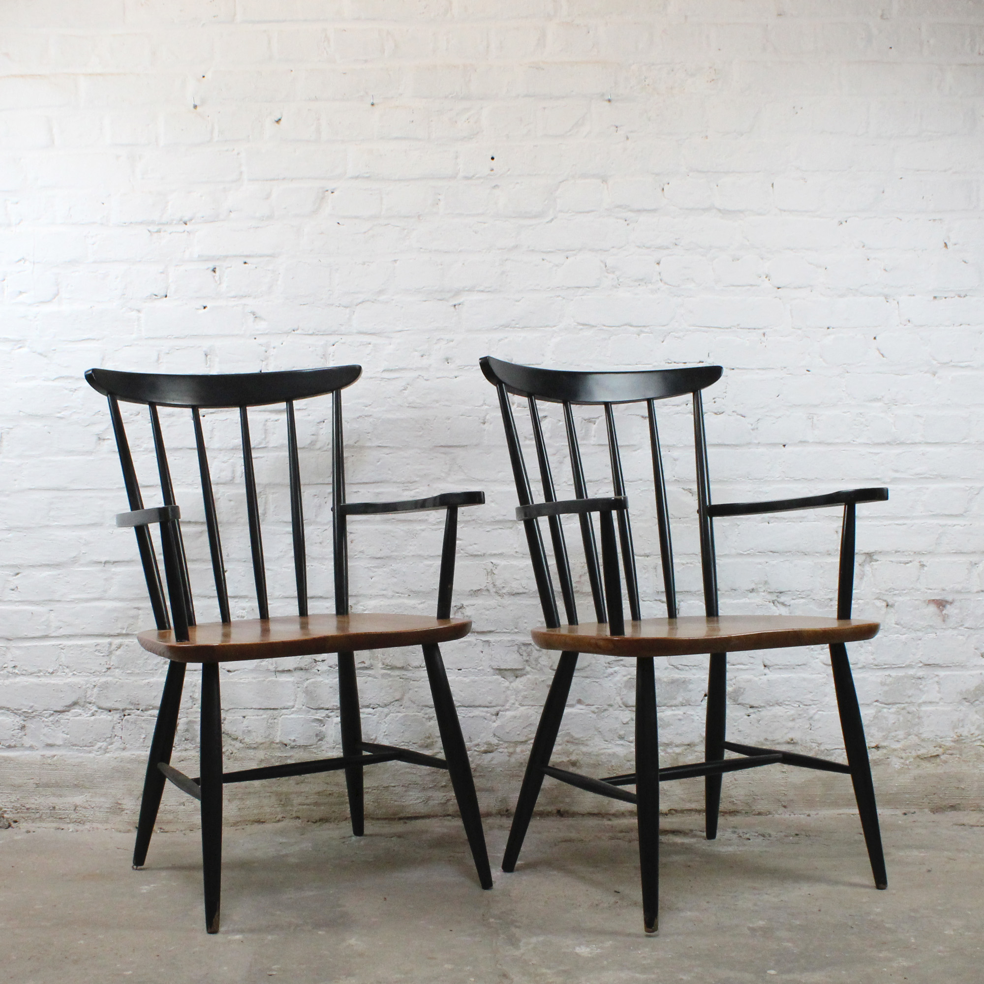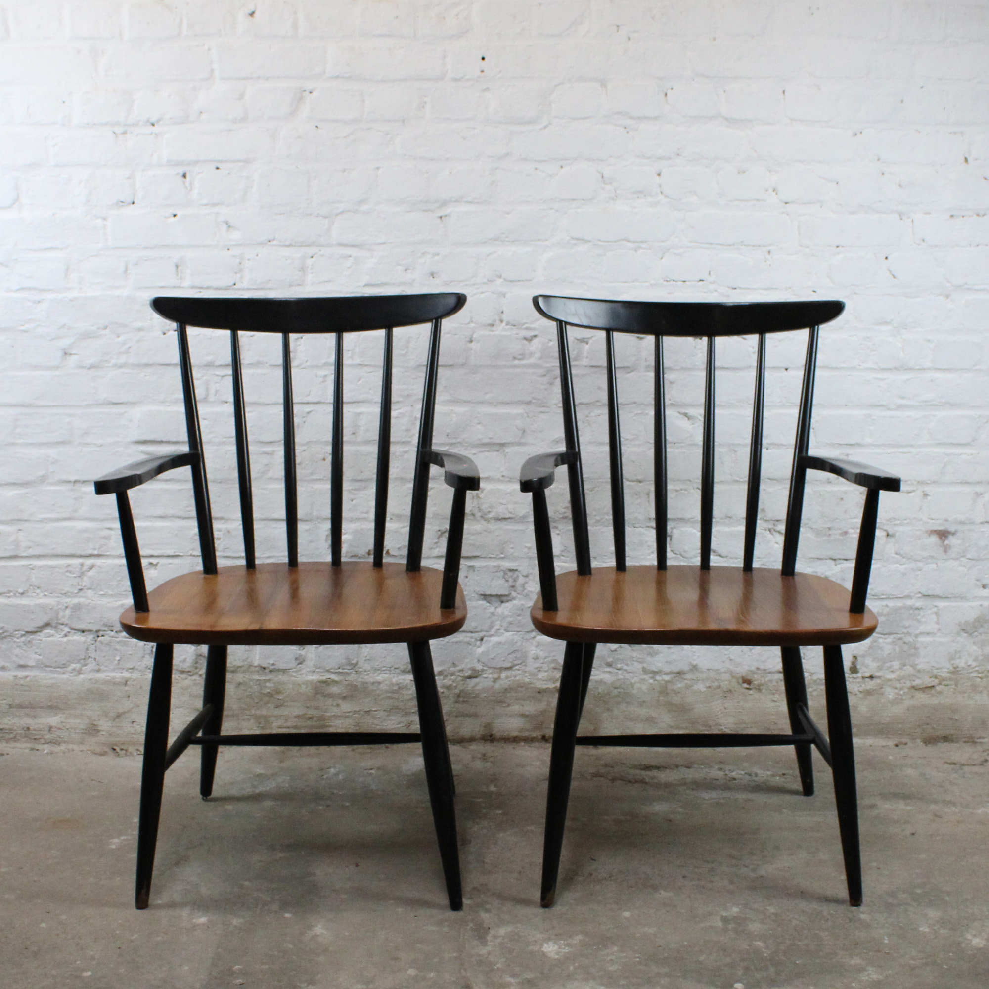 Paire de fauteuils vintage style scandinave, mais d'origine probablement belge ou hollandaise, dans le gout de Tapiovaara, en bois massif.