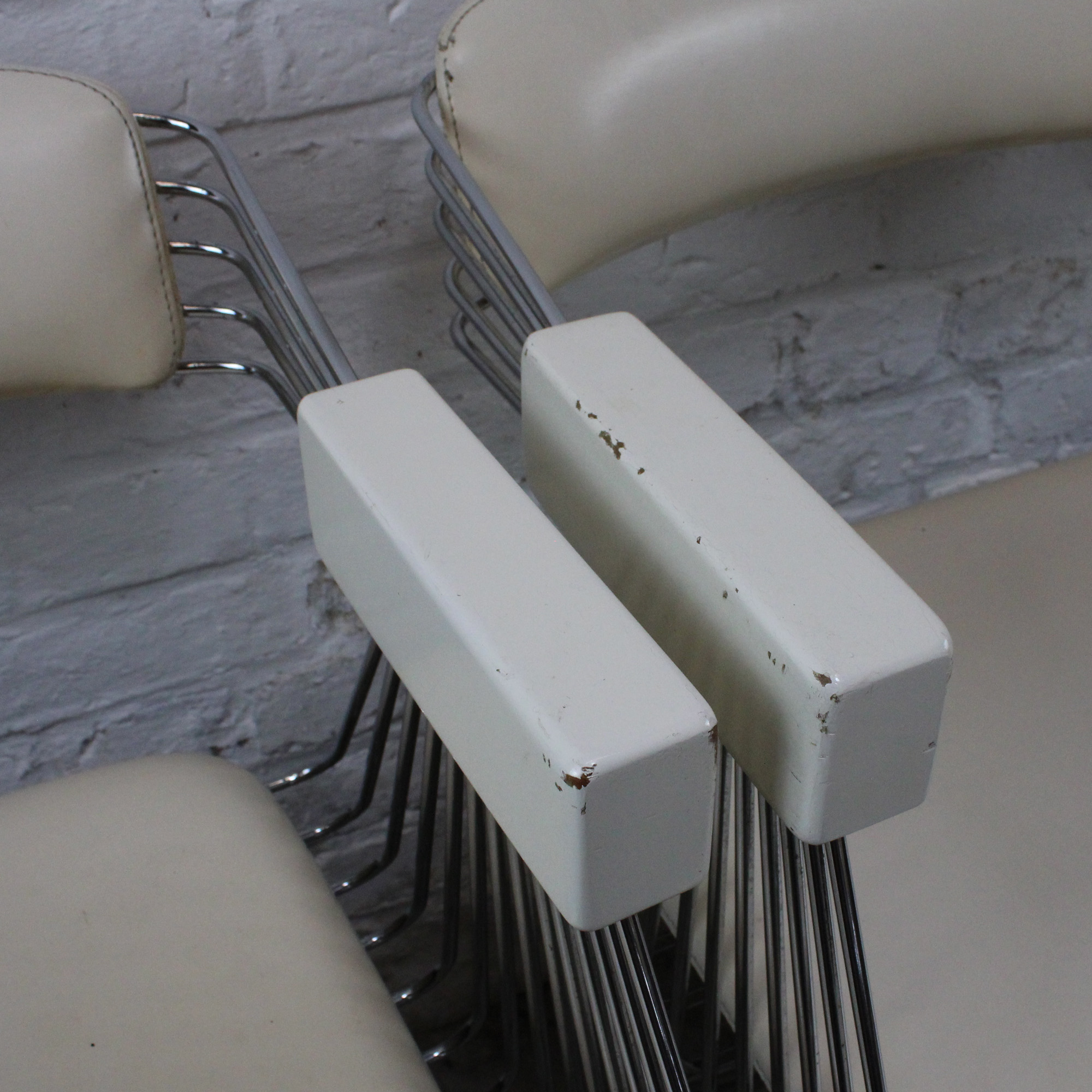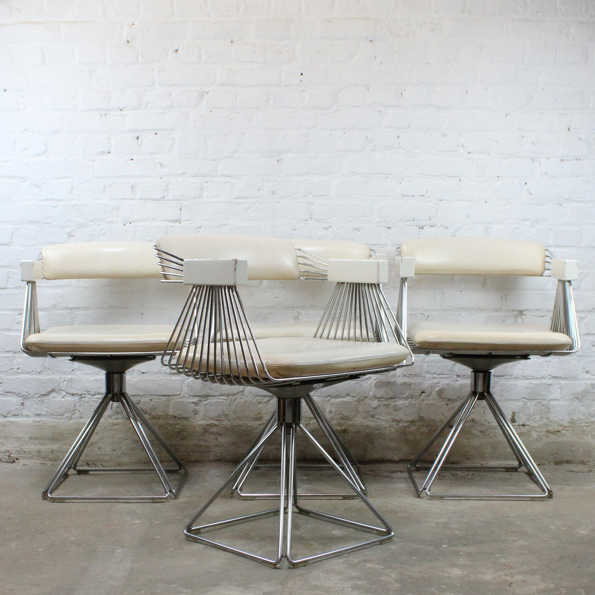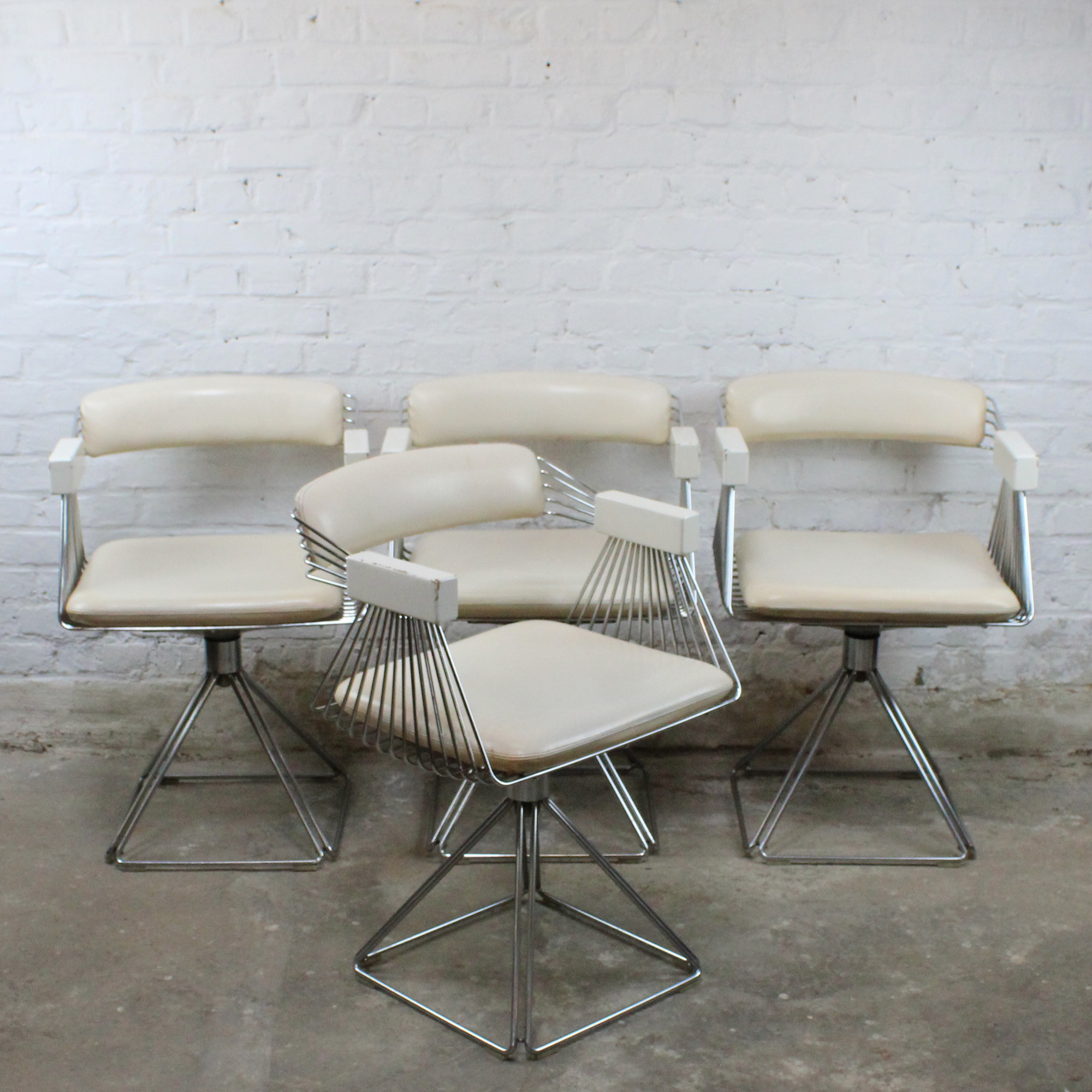 Set de 4 chaises "Delta" de Rudi Verelst pour Novalux. Modèle créé vers 1970. Structure métal chromé, coussins en simili ton crème d'origine.