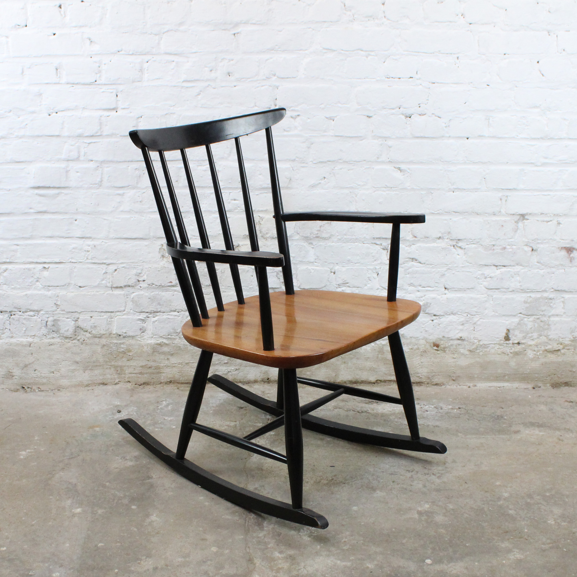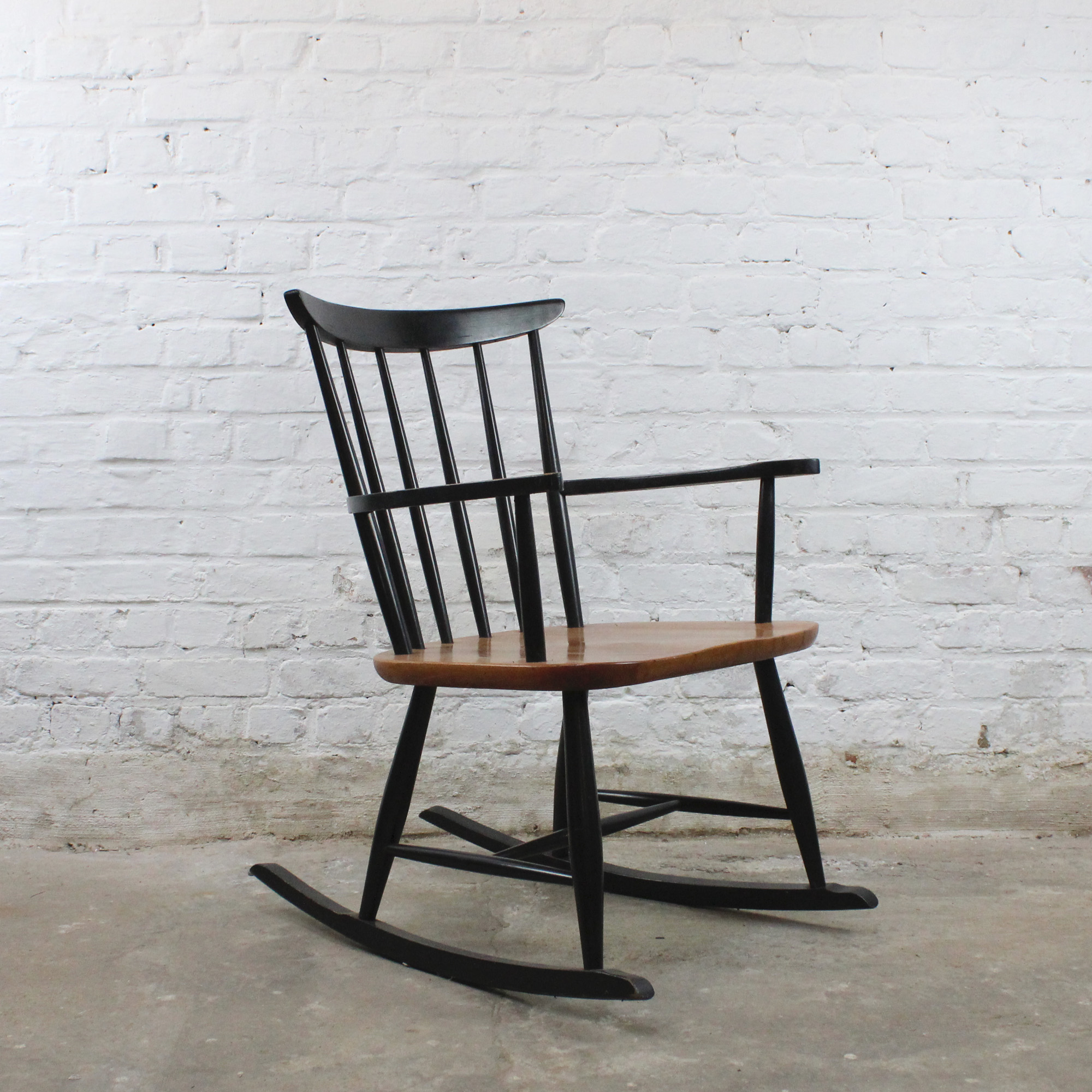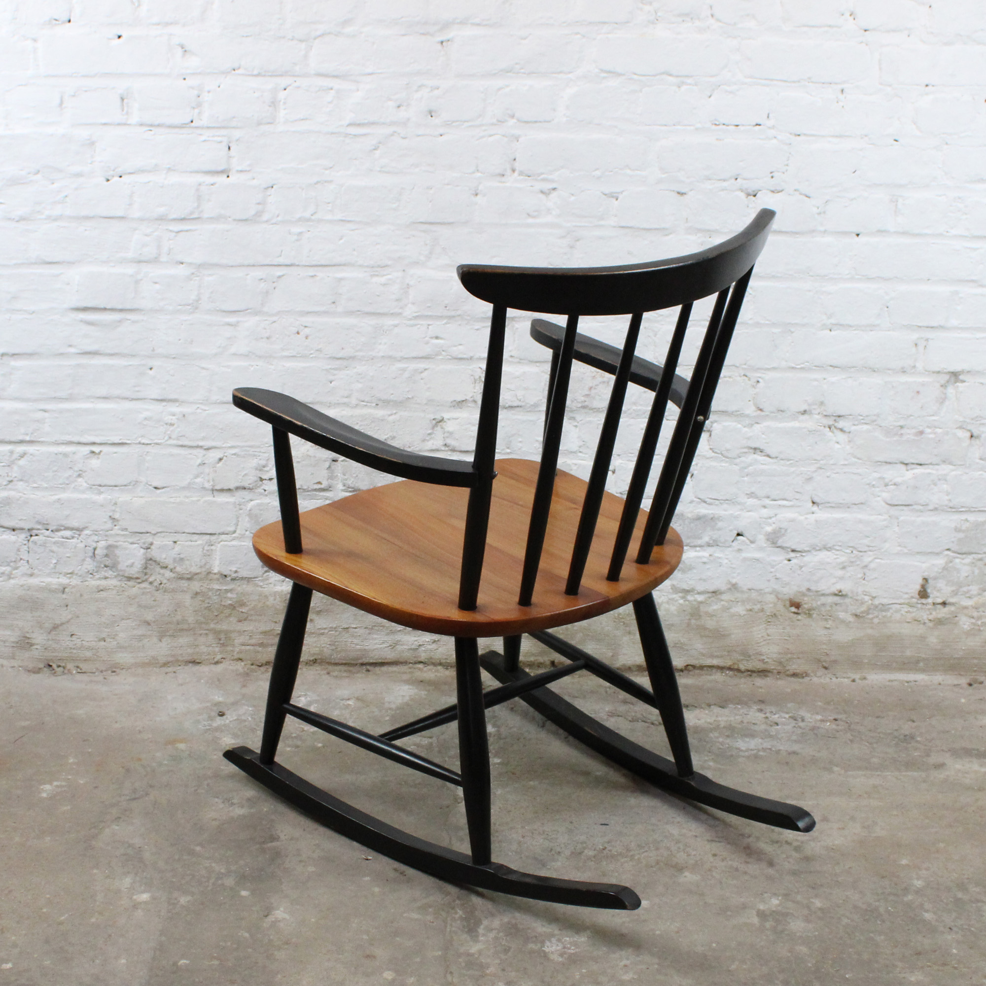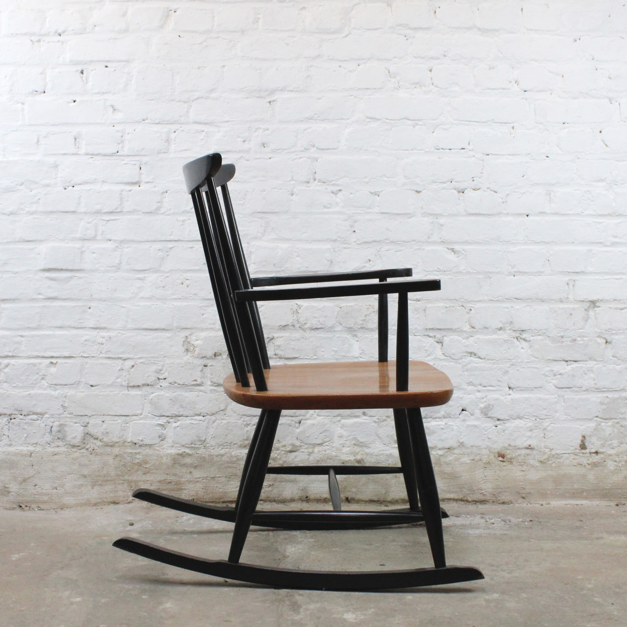 Rocking-chair vintage style scandinave, mais d'origine probablement belge ou hollandaise, dans le gout de Tapiovaara, en bois massif.